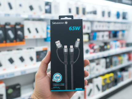 The Sabawoon S114 4‑in‑1 Cable is designed to deliver 65W original fast charging power, making it a reliable choice for