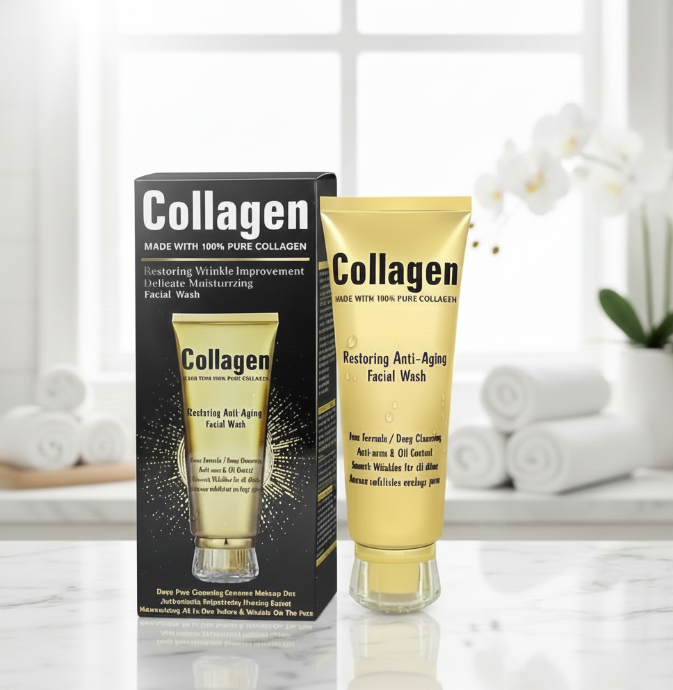 Rejuvenate Your Skin with the Collagen Restoring Anti-Aging Facial Wash ✨Experience the power of 100% Pure Collagen in this proven effective 120ml facial wash. Specifically formulated for anti-aging restoration, this deep-cleansing wash goes beyond basic cleaning to deliver multiple skin benefits, ensuring a smoother, more radiant complexion.MADE IN CHINAKey Benefits & Features (Key Responsibilities to Your Skin):Restoring Anti-Aging Action: Helps to restore the skin’s youthful appearance by supporting wrinkle improvement and providing essential rejuvenation.Deep Cleansing Formula: Effectively penetrates pores to remove deep-seated dirt, makeup residue, and impurities, leaving your skin feeling thoroughly clean and refreshed.Oil and Sebum Control: Works to manage and reduce excess oil and sebum production, helping to prevent clogged pores and maintaining a balanced, less shiny complexion.Delicate Moisturizing: Unlike harsh cleansers, this facial wash ensures your skin remains hydrated. It delicately moisturizes while cleansing, preventing dryness and tightness.Wrinkle and Line Smoothing: The collagen-rich formula actively works to smooth the appearance of fine lines and wrinkles for a noticeably softer skin texture.For All Skin Types: Gentle enough for daily use and designed to deliver visible improvements to mature or dry skin.