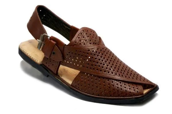 Step into a legacy of craftsmanship with our Premium Peshawari Chappals. These sandals are more than just footwear; they are a cultural statement. Meticulously fashioned from high-quality genuine leather, the upper features intricate laser-cut perforations that provide excellent breathability while adding a sophisticated texture to the design.The classic “Kheri” silhouette is reinforced with double-stitching for longevity and features an adjustable buckle strap to ensure a secure, customized fit. Whether paired with a traditional Shalwar Kameez or used to add a rugged edge to contemporary denim, these chappals offer a perfect balance of comfort and elegance.Key Features & SpecificationsMaterial: High-grade genuine leather upper with a soft inner lining.Design: Intricate perforated pattern for enhanced airflow and aesthetic appeal.Sole: Heavy-duty, slip-resistant tire-tread rubber sole for maximum grip and durability.Closure: Adjustable metallic buckle strap for a tailored fit.