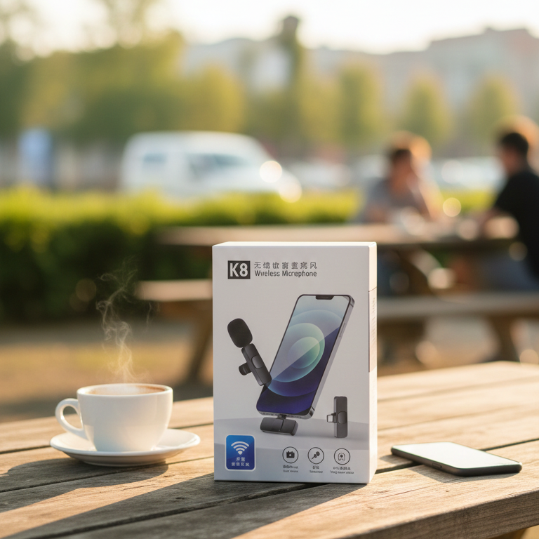 The K8 Dual Wireless Microphone is a professional-grade audio solution tailored for mobile content creators, journalists, and educators. Featuring a sleek, lightweight design, this system eliminates the clutter of cables, allowing you to record two subjects simultaneously with ease.Equipped with 360° omnidirectional pickup and a high-sensitivity condenser, the K8 ensures every nuance of the voice is captured. The built-in DSP (Digital Signal Processing) chip intelligently filters out background wind and ambient noise, delivering studio-like clarity even in outdoor environments. Its impressive battery life provides up to 6 hours of continuous use, ensuring you never miss a moment of the action.Key Features & Performance ResponsibilitiesDual-Channel Recording: Allows two people to record at once, making it ideal for interviews, podcasts, and collaborative videos.Automatic Pairing: No Bluetooth or apps required. Simply plug the receiver into your device and turn on the microphones to sync instantly.Intelligent Noise Cancellation: High-end acoustic technology effectively suppresses environmental noise for clear vocal reproduction.Long-Distance Transmission: Offers a stable, low-latency connection at a range of up to 20 meters (65 feet) in open areas.Universal Compatibility: Available in USB-C or Lightning configurations to support modern smartphones, tablets, and laptops.Real-Time Monitoring: Low-latency technology ensures your audio stays perfectly synced with your video during live broadcasts.