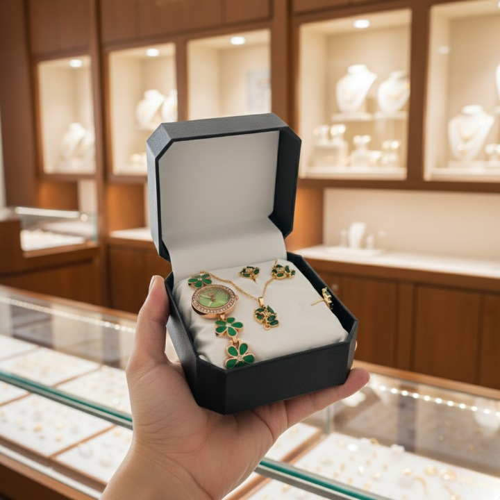 Ladies Jewellery And Bangle With Watch Is Crafted With Elegant Stylish Design And Durable Quality Offering Timeless Fashion Appeal And Reliable Performance. It Enhances Personality With Sophisticated Look Making It Suitable For Daily Wear Parties And Special Occasions. The Watch Ensures Dependable Quality Along With Graceful Design Providing Confidence Charm And Style. Ladies Jewellery And Bangle With Watch Is A Perfect Choice For Those Seeking Elegance Reliability And Fashion Statement In One Accessory.Key FeaturesElegant Stylish And Timeless DesignDurable Quality With Dependable BuildReliable Performance For Daily WearEnhances Fashion And PersonalitySuitable For Parties And Special Occasions