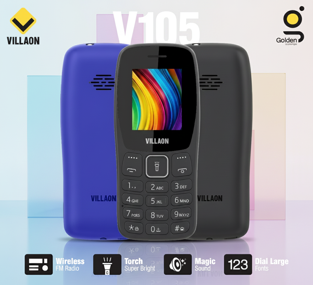 Villaon V105 Dual SIM Feature Phone – Ultra-Bright Torch, Wireless FM Radio, and Large Font Display for Enhanced Accessibility ₨ 2,426
