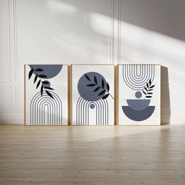 Set of 3 Abstract Wall Art Frames – 8×11″ MDF Wood with Adhesive Backing