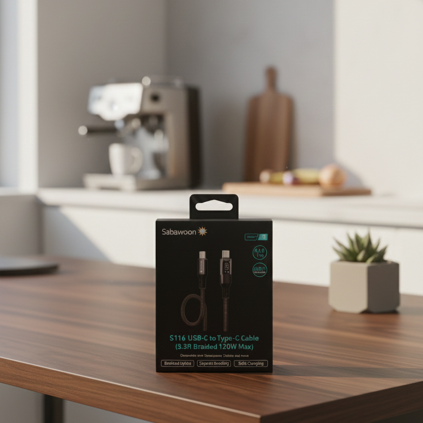 Elevate your tech setup with the Sabawoon S116 Series 3 charging cable, engineered for users who demand transparency and speed. Whether you are powering up a flagship smartphone or a power-hungry laptop, this cable provides the wattage you need with the intelligence to show you exactly how fast your device is charging.Key Features:Real-Time Power Monitoring: The integrated LED display provides a live readout of the wattage, ensuring your charger and device are performing at their peak.120W Ultra-Fast Charging: Designed to support the latest high-speed charging protocols, capable of delivering up to 120W of power.Rugged Durability: Featuring a high-density braided nylon exterior, this cable is built to resist fraying and withstand over 10,000 bends.Universal Compatibility: Seamlessly works with all USB-C devices, including the latest iPhones, Samsung Galaxy devices, iPads, and MacBooks.Safety First: Advanced internal circuitry protects against over-current, over-voltage, and overheating for total peace of mind.