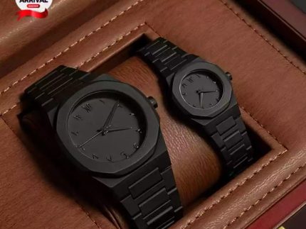 Black Aura Couple Watch – Elegant Matching Timepieces, Stylish Fashion Accessories for Men and Women-without box
